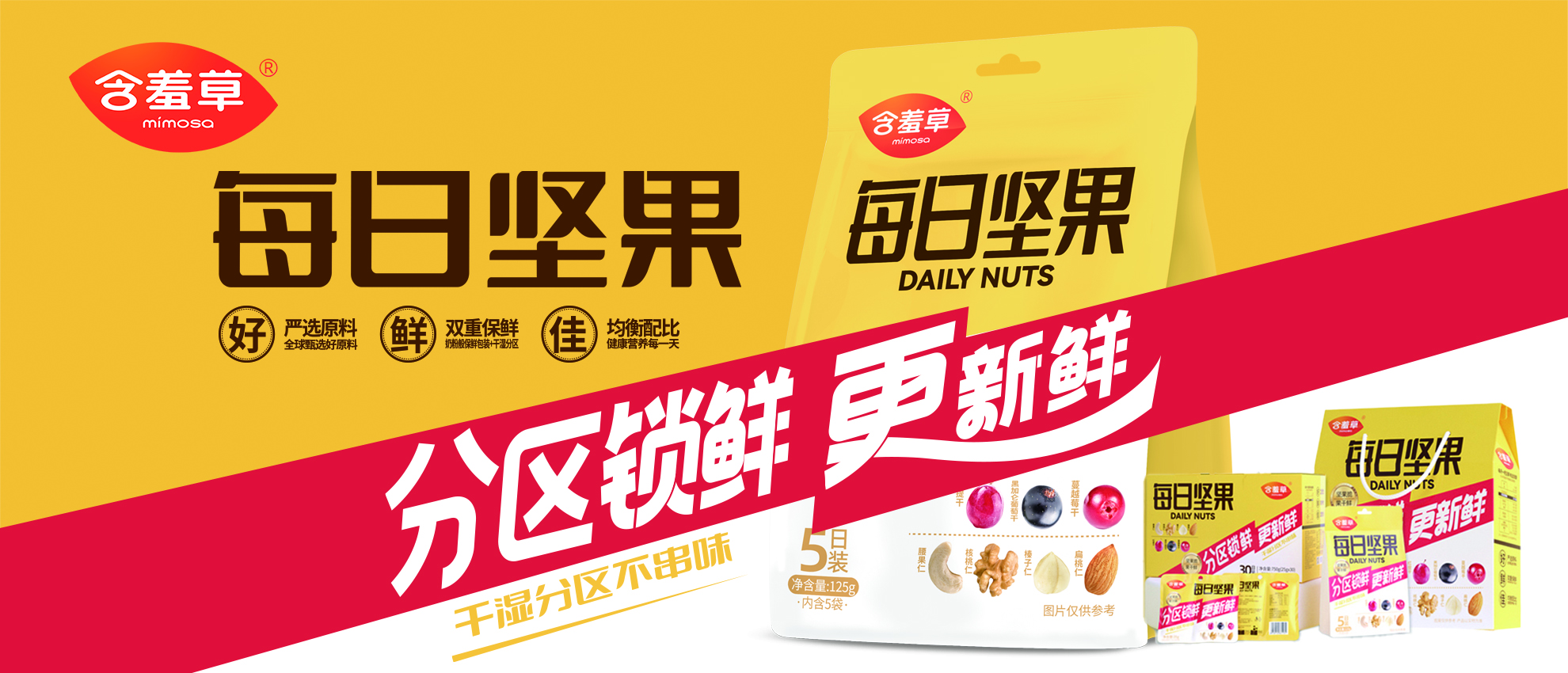 含羞草品牌定位于休閑食品,旗下有果干、堅果、核桃、葡萄干、山楂等美味、健康、特色的休閑系列食品。集團公司投入優勢資源,打造“含羞草”為休閑食品行業中領導性品牌,建立鮮明的模式。2007年含羞草被認定為“中國馳名商標”。